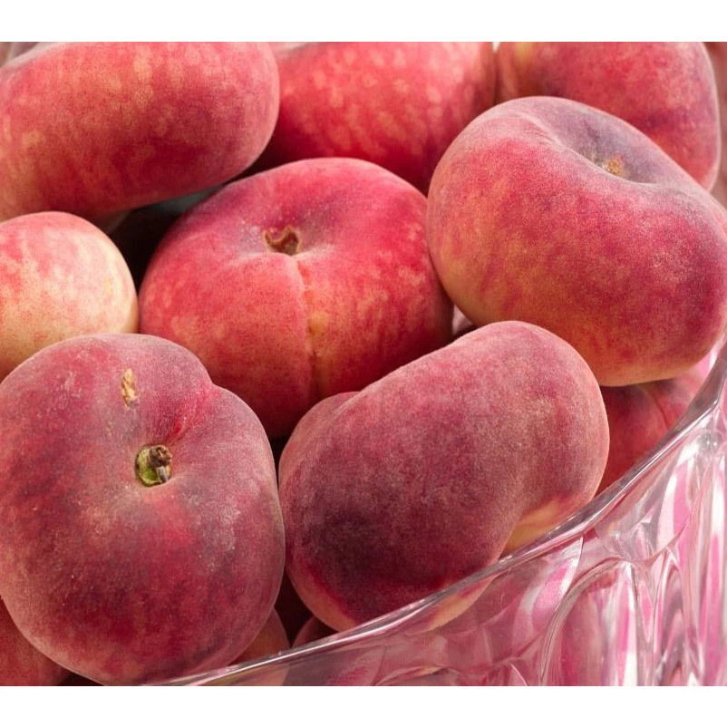 Der Tellerpfirsich (Prunus persica) bildet gelb-rote, flach wachsende Früchte mit einem angenehmen Geschmack, die bereits ab August geerntet werden können. Für eine ertragreiche Ernte schaffen lockerer, nährstoffreicher, sandiger Boden und ein sonniger Standort optimale Bedingungen. Auch seine rosafarbene Blüten, die von März bis April erscheinen, bieten einen schönen Anblick.